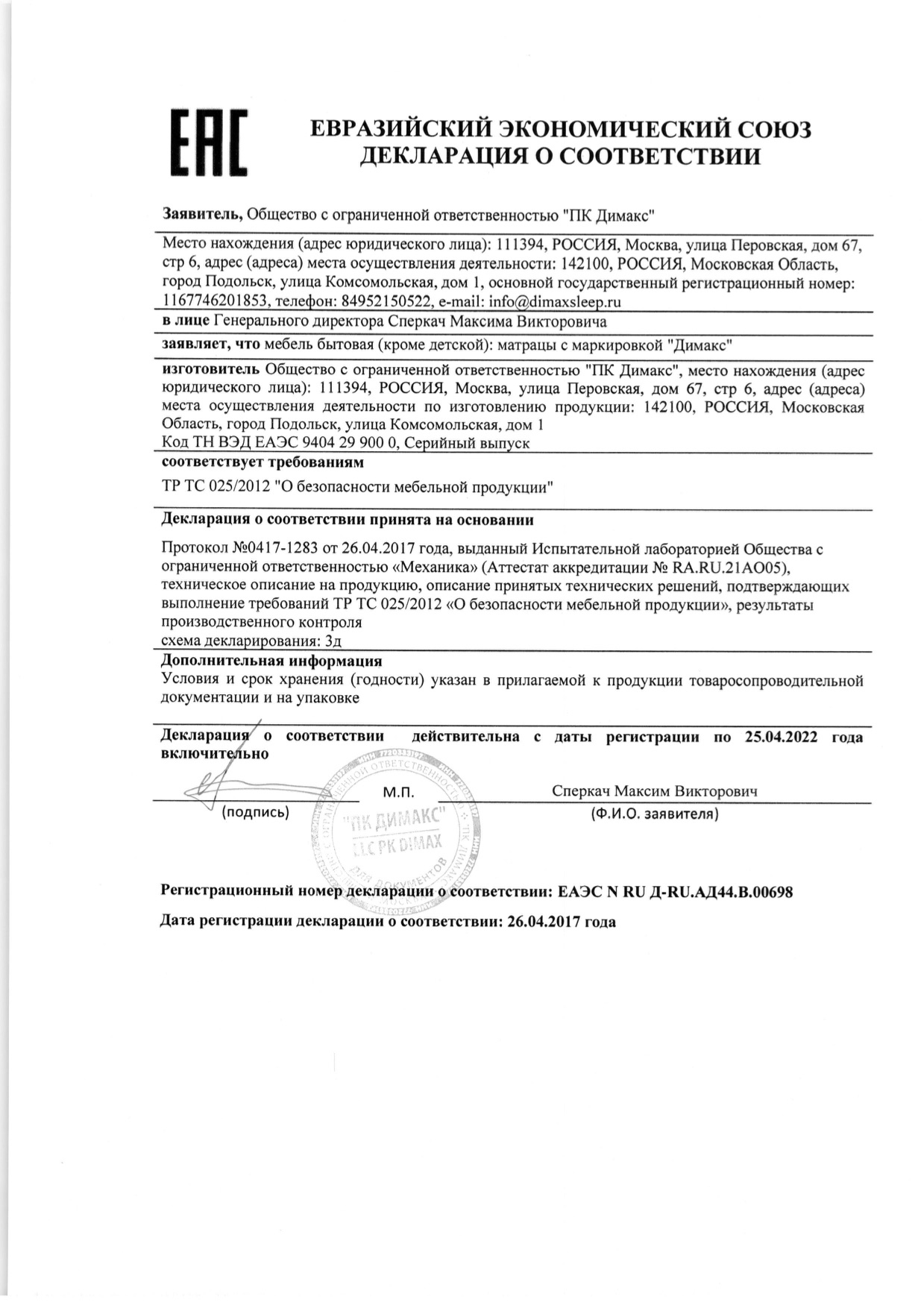 - Продукция имеет сертификат соответствия
